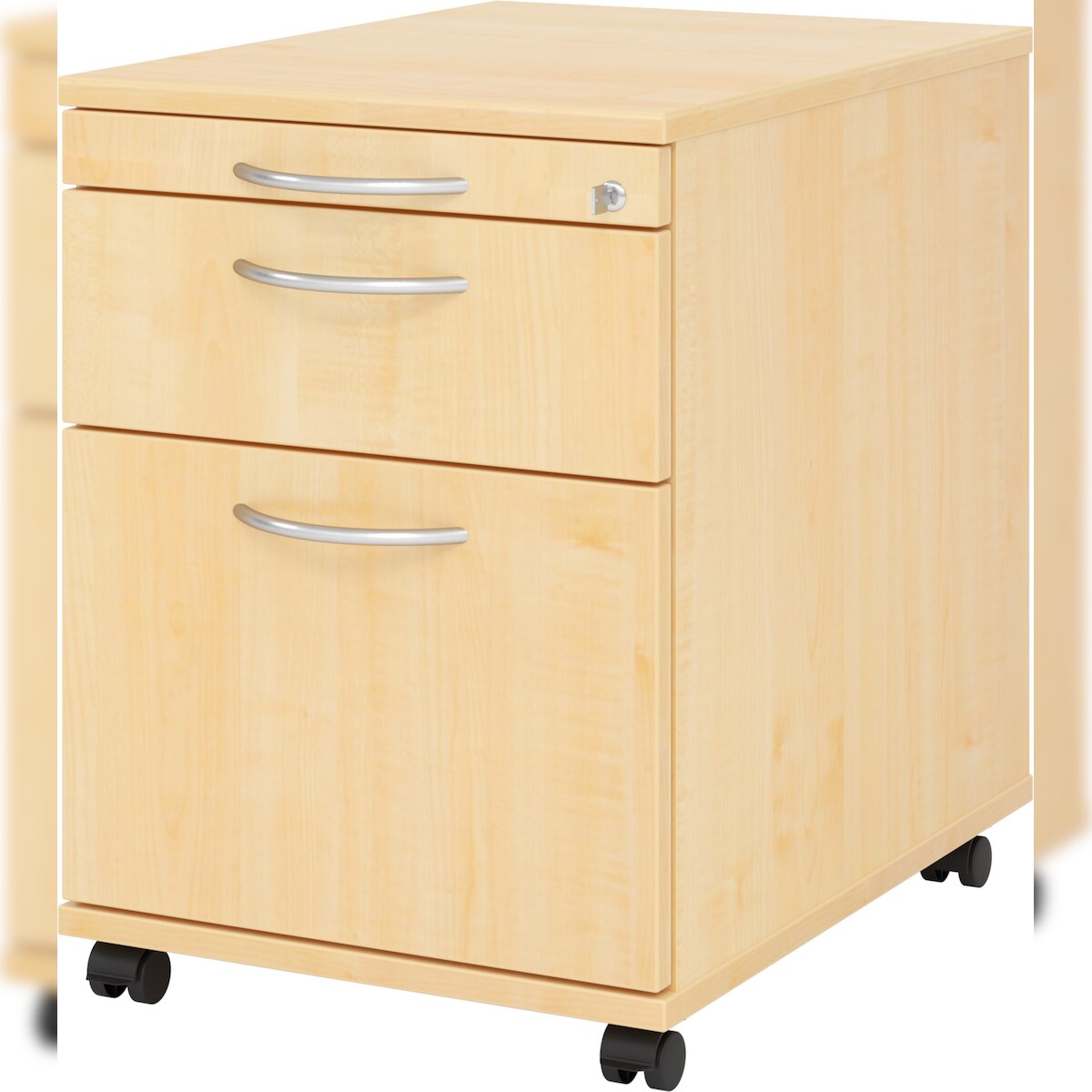 bümö Rollcontainer mit Hängeregistratur, Container abschließbar aus Holz in Ahorn - Rollwagen für's Büro mit Hängeregister als Schreibtisch