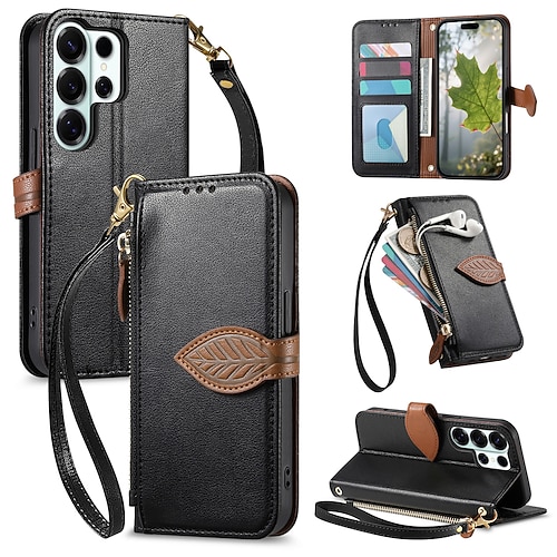 Handy Hülle Handyhüllen Für Samsung Galaxy S26 Ultra Plus S25 S24 S23 Ultra Plus S24 FE S22 Plus Ultra A55 5G A35 5G A25 A15 Flip-Cover Mit Ständer mit Trageriemen Mit Handgelenkschlaufe Retro TPU