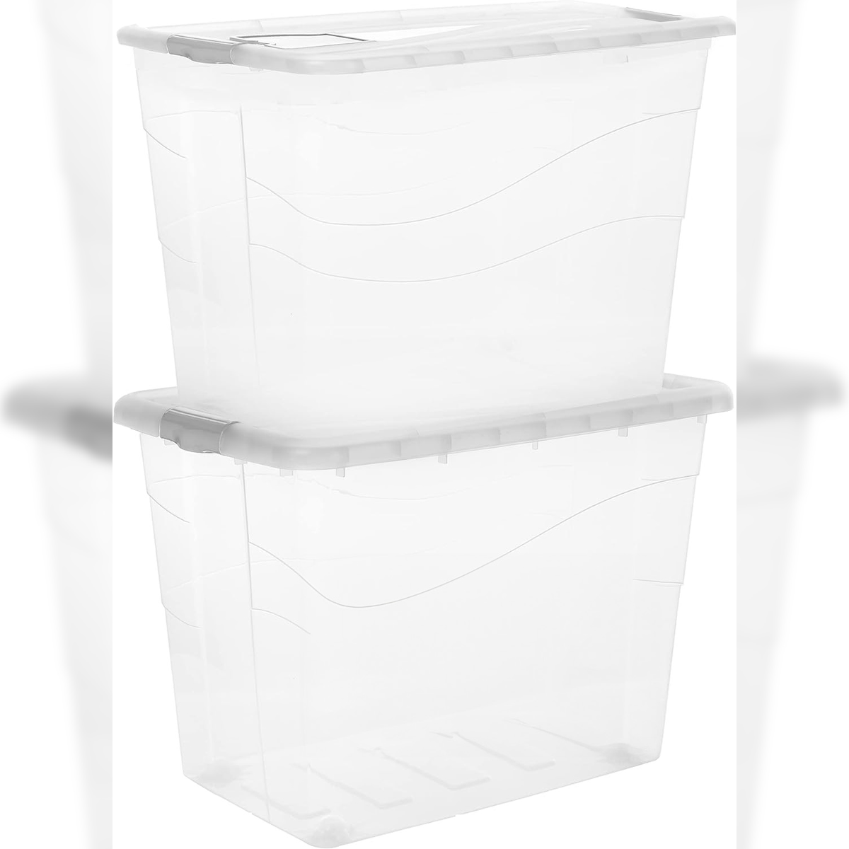 2 Stück Aufbewahrungsboxen, 80 Liter Boxen mit Deckel, Rollen und Clip-Griffen