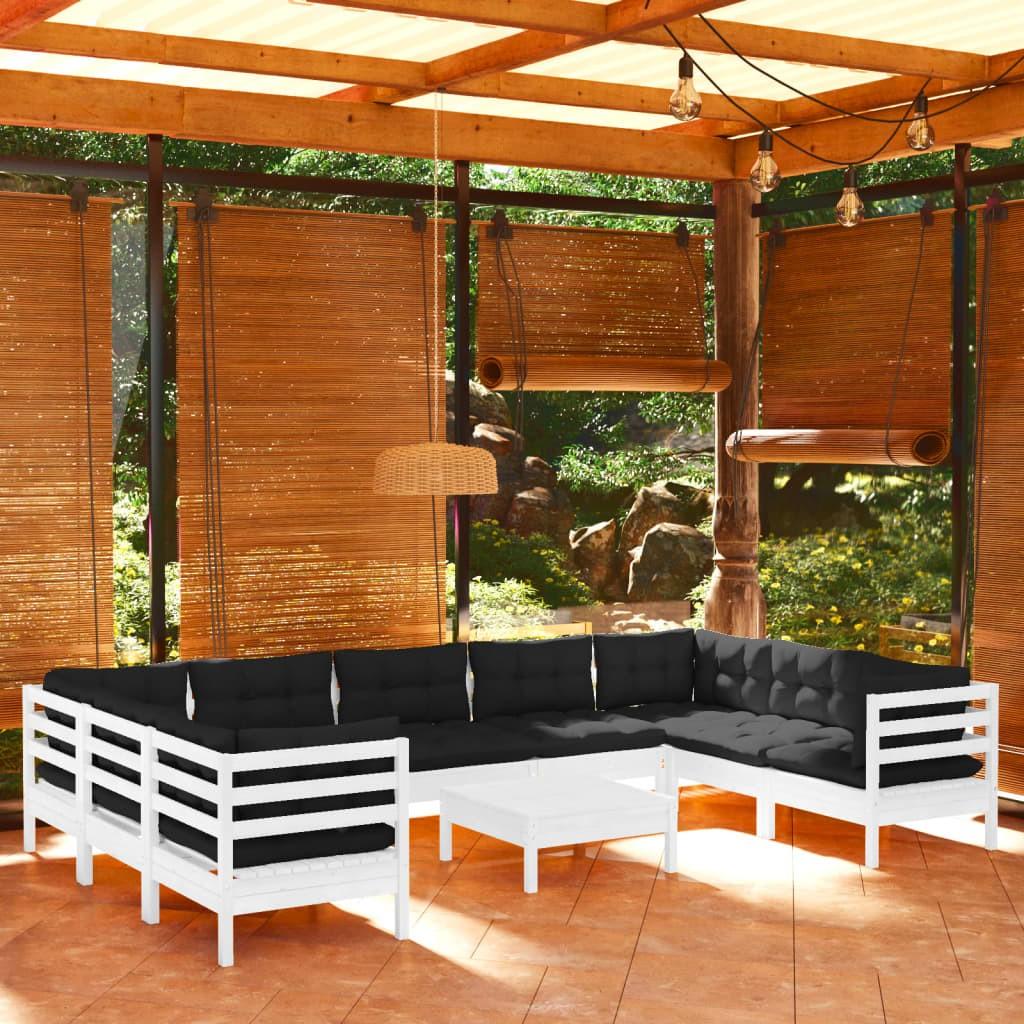 Loungesæt til haven 10 dele med hynder fyrretræ hvid