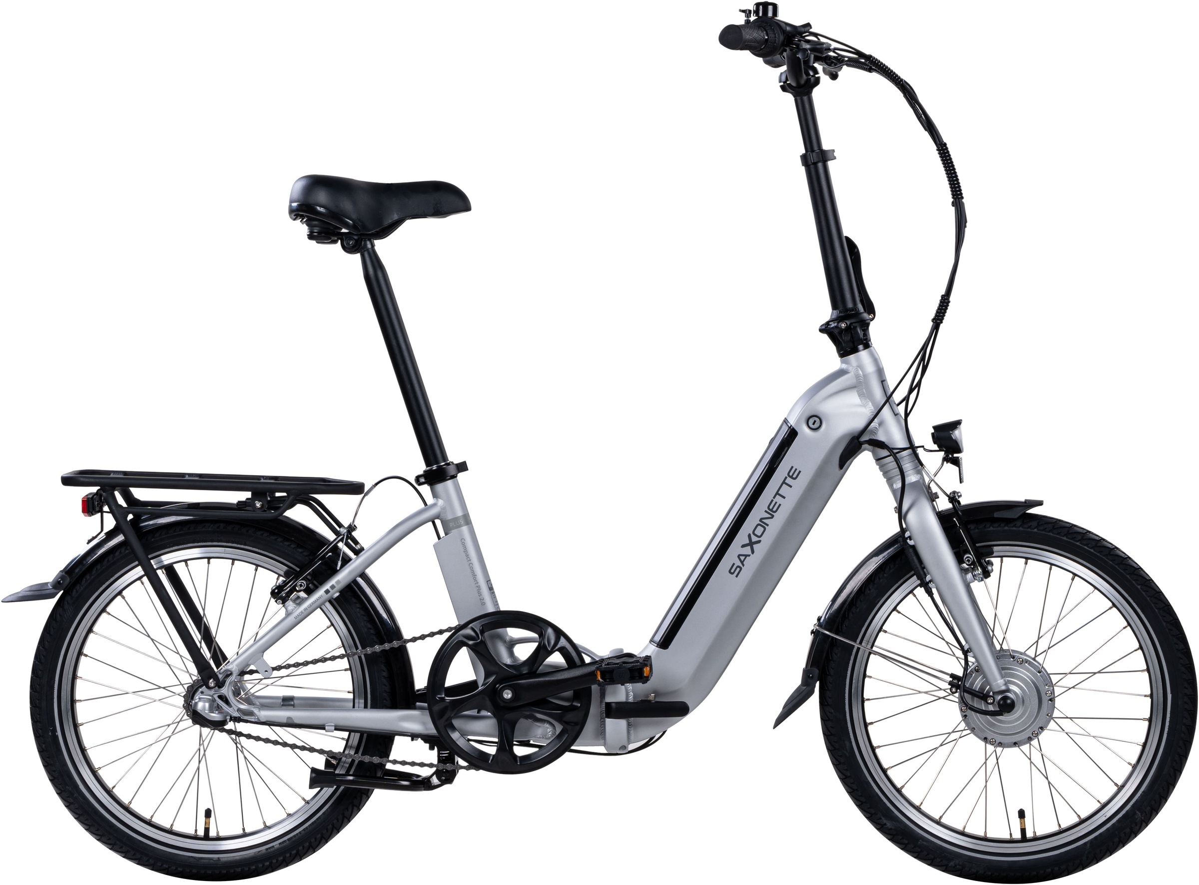 E-Bike SAXONETTE "Compact Comfort Plus 2.0" Gr. 33, silber (silberfarben matt, silberfarben), Elektrofahrräder, 33cm, 20 Zoll (50,80cm), Pedelec, Elektrofahrrad für Damen u. Herren, Topseller