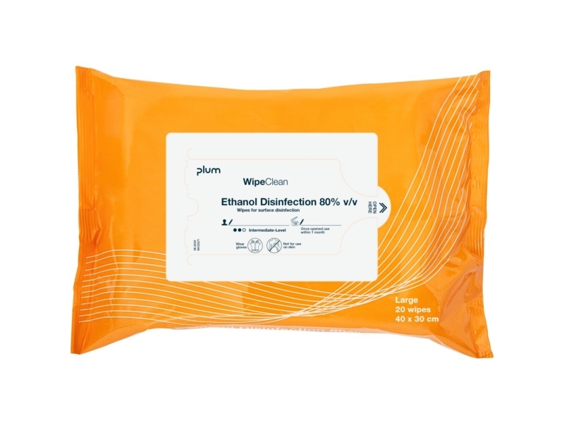 Plum Wipeclean Ethanol 80 % - Engangsklude til desinfektion af løse emner, pk. a 20stk