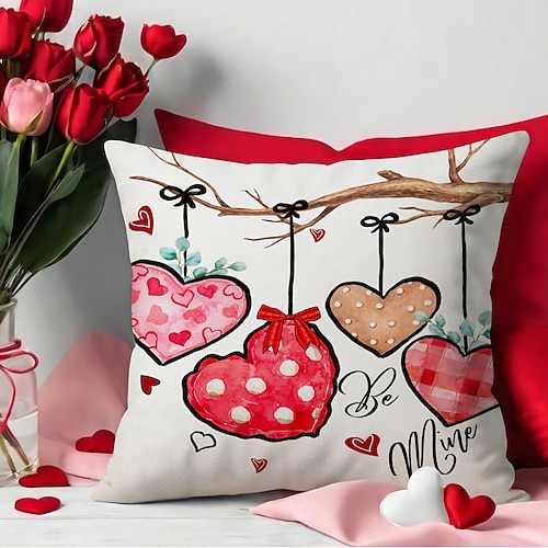 federa per cuscino di San Valentino, cuscino decorativo con palloncino a forma di cuore rosso, cuscino dall'atmosfera romantica per divano, soggiorno, camera da letto, accogliente accento natalizio