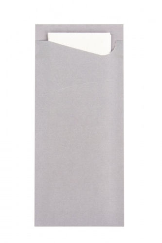 Prime Guest Bestecktasche Prime Fit in Grau 85 x 190 mm, mit 2-lagiger Tissue-Serviette in Weiß - 500 Stück