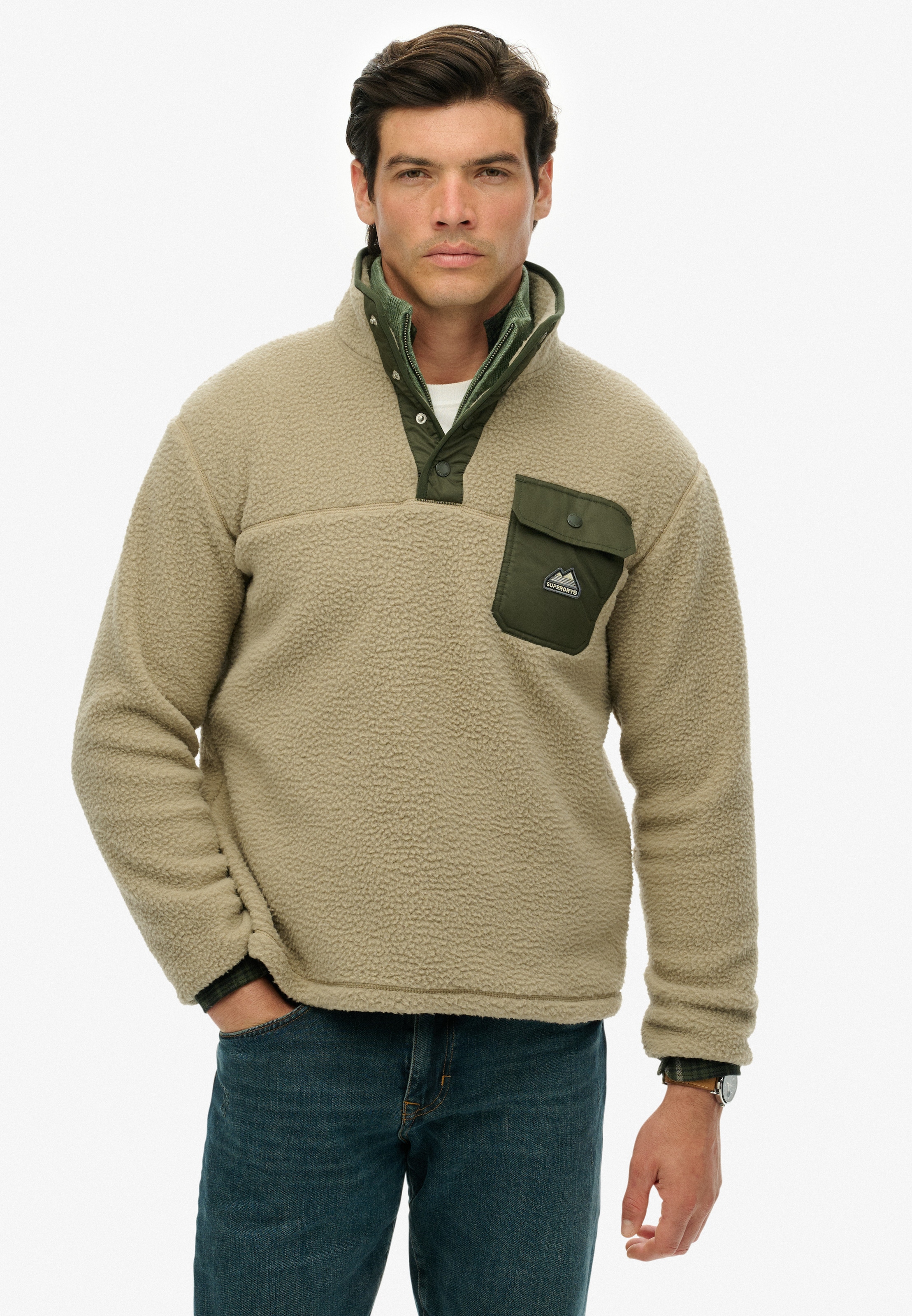 Sweatshirt SUPERDRY "FUJI FLEECE HENLEY", Herren, Gr. XXL, beige (winter twig beige), angeraute Sweatware, Obermaterial: 100% Polyester, unifarben, Modisch, relaxed fit, hoch geschlossener Ausschnitt, Rippbündchen, Sweatshirts