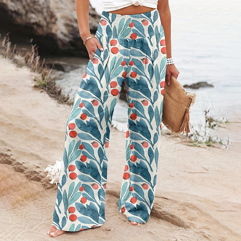 Women's Wide Leg Cotton Linen Pants Slacks Streetwear Casual Full Length Natural Floral Pocket Printing Comfy Outdoor Outdoor Vacation Street Black Grey Orange red Forest Green Depression Green Summer
