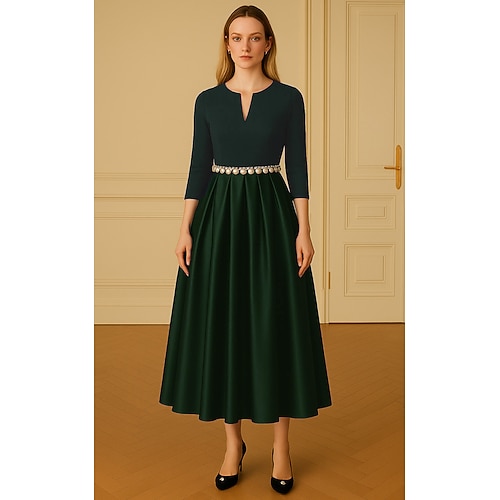 Linea ad A Lunghezza al pavimento Lunghezza Tè Perline ricamate Abito Formale Abito da madre della sposa Abiti da Cocktail Abito da Sera Abiti da festa Elegante Setoso Manica 3/4 Girocollo Matrimonio