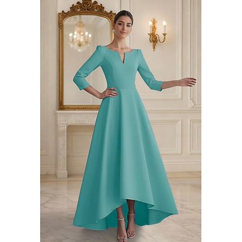 Linea ad A Asimmetrico Lunghezza alla caviglia Vestito da Festa Abito da Cocktail Abito da invitata a nozze Abito da cerimonia per signora Manica 3/4 Scollo a V Elegante Vintage Formale Raso