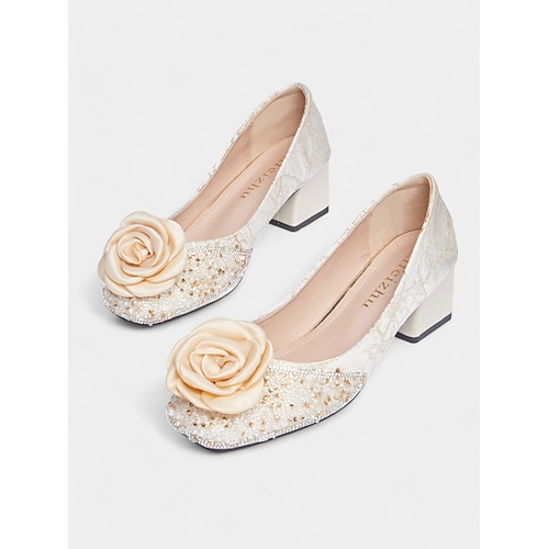 Elegante Pumps mit Blockabsatz und 3D-Blumenapplikation für die Mutter der Braut, elegante Schuhe für Hochzeitsgäste zur Zeremonie und zum Empfang