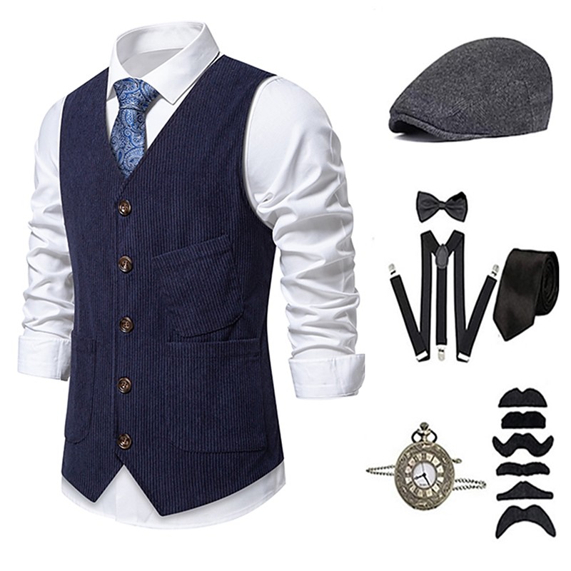 1920s Vintage Inspired The Great Gatsby Party Costume Masquerade Accessories Set Sleeveless Collarless Fancy Dress Men's Halloween Party Evening Casual Daily Adults' Vest Hat All Seasons