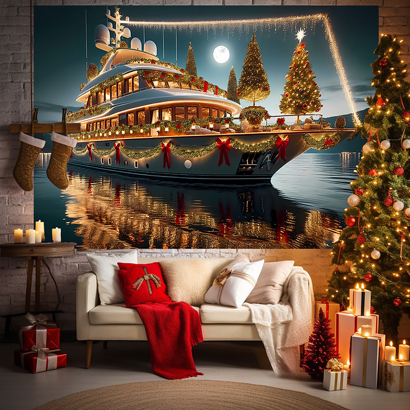 Christmas Tapestry Banners Blanket Merry Christmas Yacht Cozy Party Living Room Dorm Shooting Backgrounds Yard Gift Home Decor