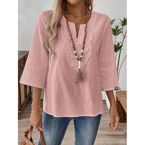 Per donna Camicia Camicie di cotone e lino Blusa Asimmetrico Semplice Attivo Elegante Manica Lunga Scollo a V Top Regolari Quotidiano Ferie Uscire Blu Oro rosa Bianco Rosa Rosso Estate Primavera