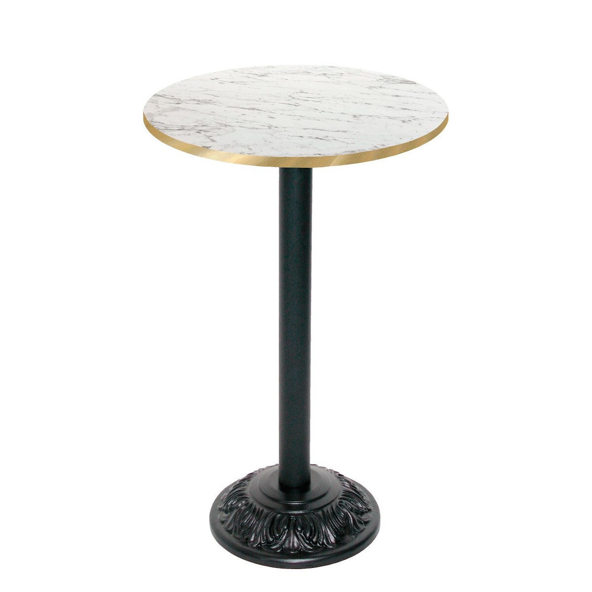 Restootab Stehtisch Bistrot-Stil Ø60cm - Modell Calacatta mit messingfarbenen Kanten