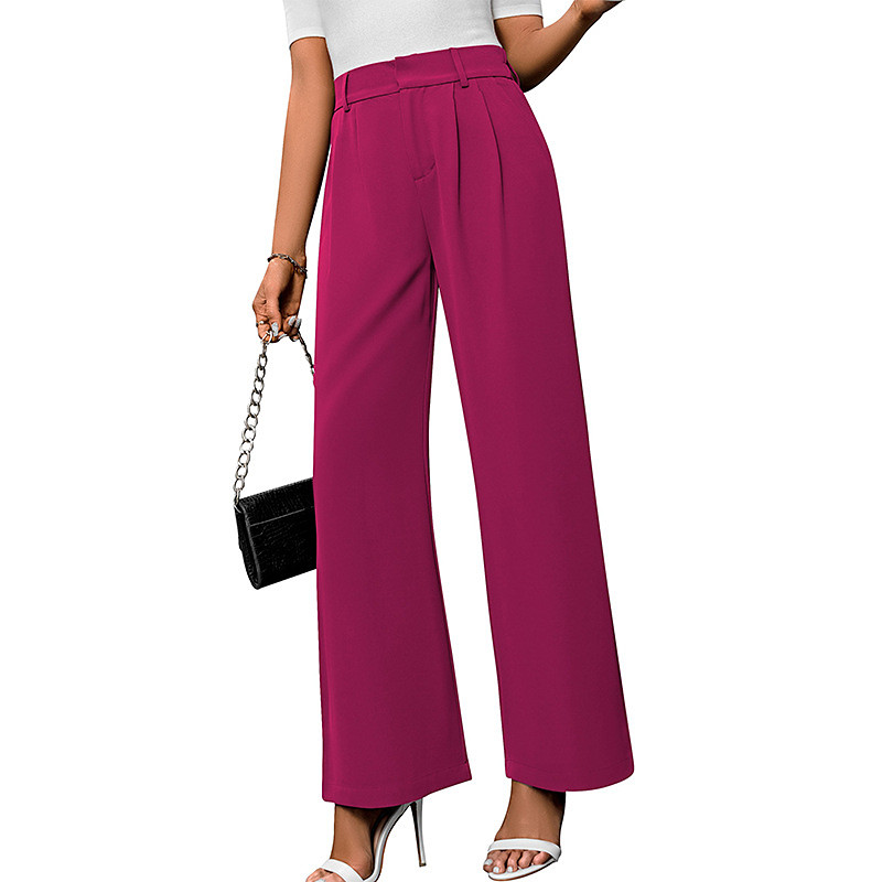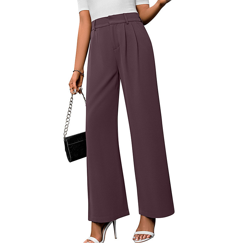 Women's Wide Leg Dress Pants Streetwear Casual Full Length Natural Plain Pocket Elastic Waist Comfortable Work Business Grey Navy Black White Fall Regular Fit
