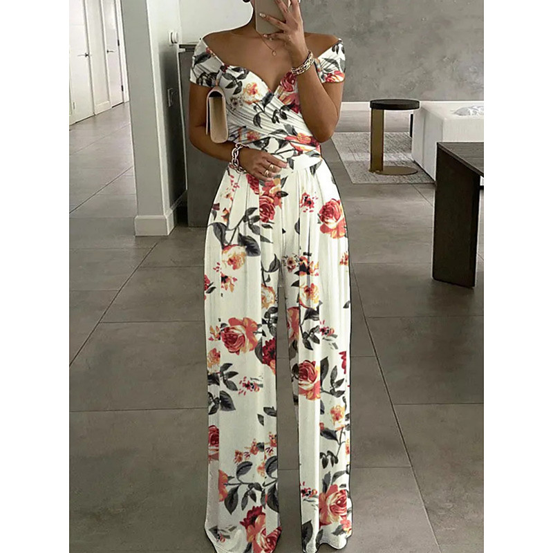 Women's Normal Jumpsuit Elegant Floral Short Sleeve Wide Leg Off Shoulder High Waist Vacation Daily Regular Fit Black White Red Summer