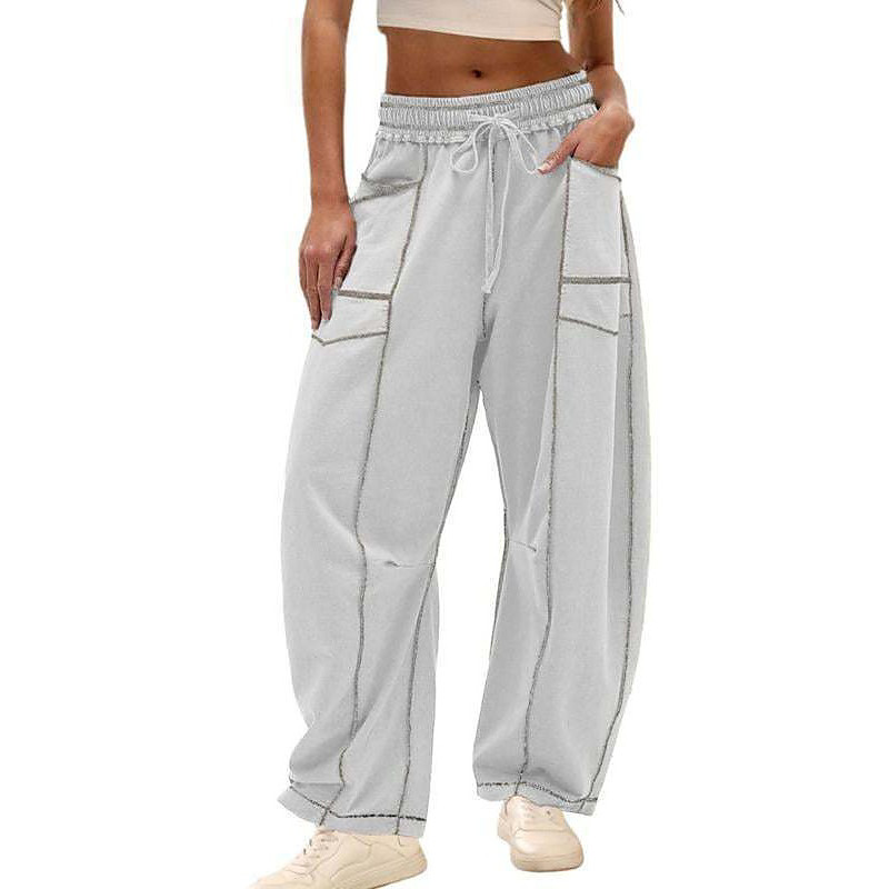 Women's Wide Leg Slacks Streetwear Casual Full Length Natural Plain Elastic Waist Comfortable Outdoor Vacation Holiday Maroon claret Ash Dark-Gray Fall Regular Fit