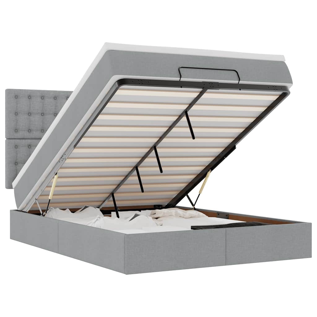 vidaXL Ottoman-Bett mit Matratze & LEDs Hellgrau 140x190 cm Stoff