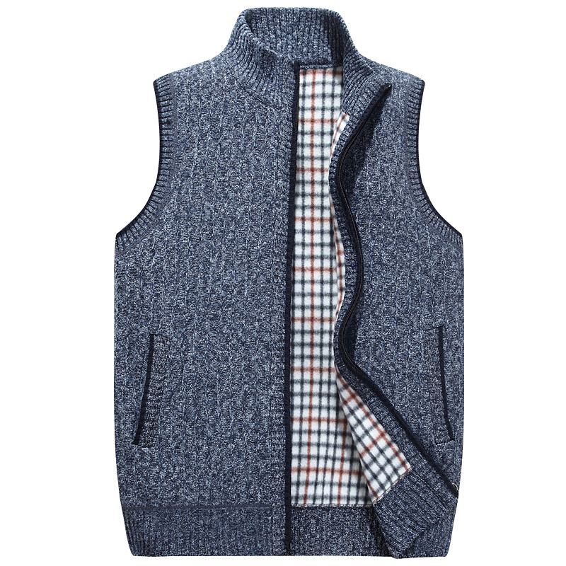 Men's Sweater Vest Cardigan Zip Sweater Sweater Jacket Fleece Sweater Knit Knitted Solid Color Stand Collar Modern Contemporary Casual Outdoor Clothing Apparel Winter Blue Black M L XL
