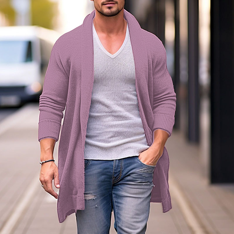 Men's Cardigan Sweater Fall Sweater Ribbed Knit Tunic Knitted Plain Shawl Collar Warm Ups Modern Contemporary Daily Wear Going out Clothing Apparel Fall Winter Red Blue M L XL