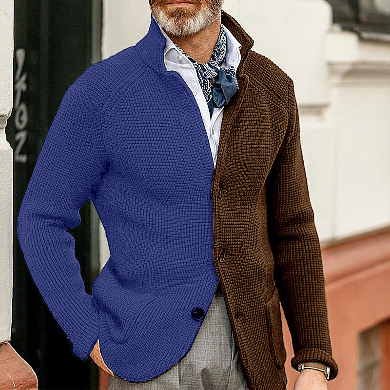Men's Sweater Cardigan Sweater Ribbed Knit Regular Tops Button Up Patchwork Plain Stand Collar Vacation Fashion Casual Daily Wear Clothing Apparel Fall Winter Blue Black M L XL