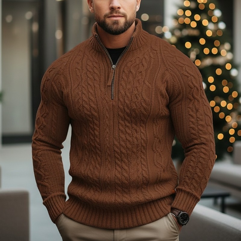 Men's Christmas Sweaters Pullover Sweater Jumper Cable Knit Regular Tops Knitted Quarter Zip Plain Stand Collar Modern Contemporary Casual Xmas Work Clothing Apparel Spring Fall Winter Blue Black M