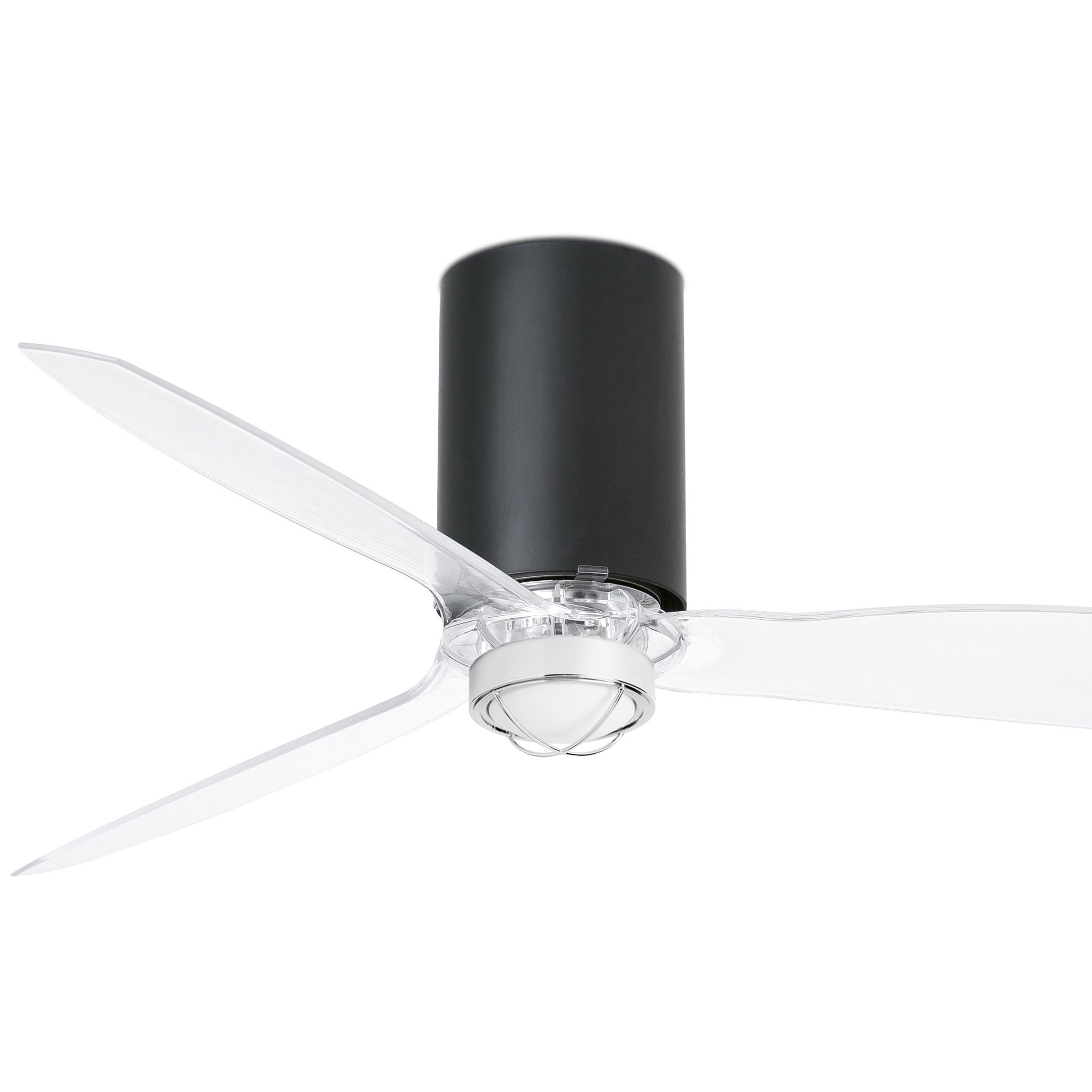 Faro Mini Tube - ventilateur de plafond avec lumière et télécommande - Ø 128 cm - 17W LED inclus - noir mat et transparent