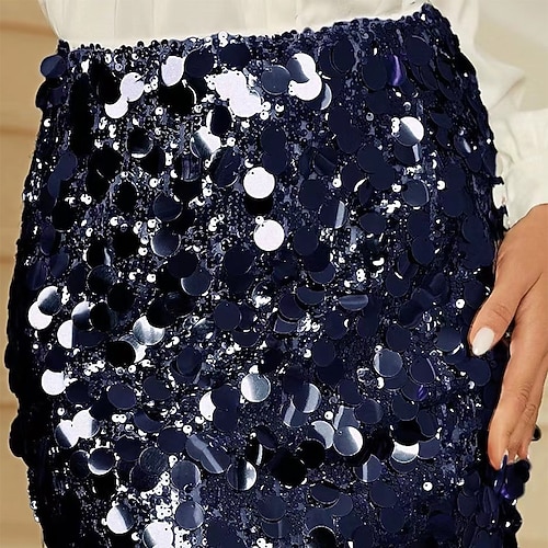 Per donna Gonna Aderente Moda Brillanti Brillare Splendere Mini Vita Alta Gonne Semplice Paillettes Micro-elastico Feste Streetwear blu navy Nero Champagne Rosa Primavera Poliestere