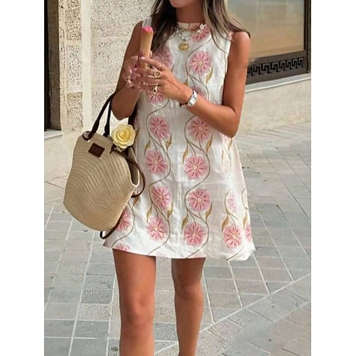 Per donna Mini Abito Vestito Estivo Vacanza Casual Boho All'aperto Uscire Vestibilità comoda Floreale Senza Maniche Girocollo Giallo Rosa Verde Estate Primavera