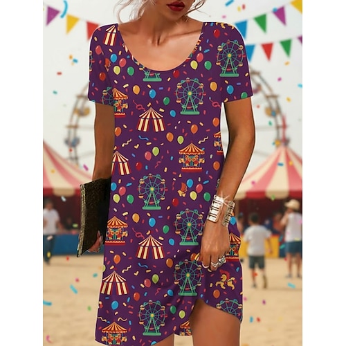 Per donna Mini Abito Vestito Casual Vestito T-Shirt Moda Moderno Quotidiano All'aperto Vacanza Vestibilità regolare Grafico Manica Corta Girocollo Viola chiaro Viola Fucsia Verde Estate Primavera