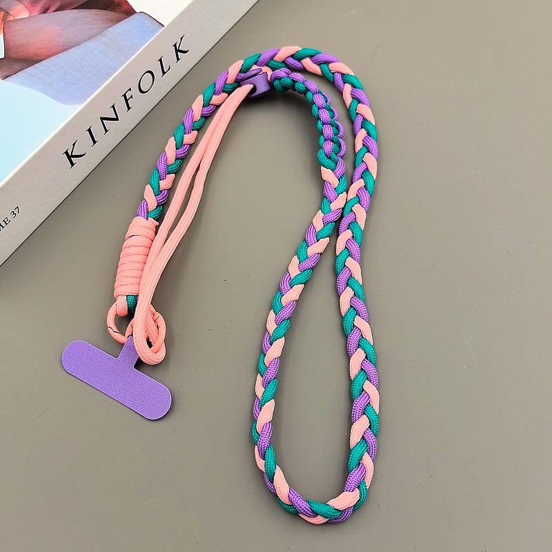 Fashion colored three strand braided rope for girls diagonal cross strap rope anti loss and sturdy hanging strap keychain mobile phone solid color hanging rope
