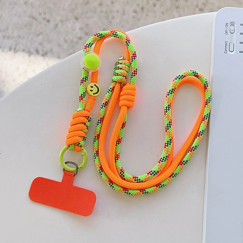 New fashionable and trendy shoulder strap with adjustable long rope for mobile phone hanging neck and crossbody cute smiling face hanging chain outdoor sturdy hanging rope for women