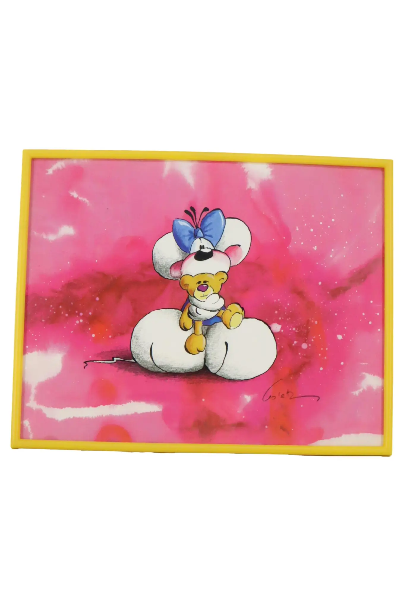 Maus Rosa Bild mit Gelbem Rahmen 23x29cm Kinderzimmer Deko