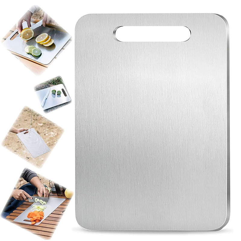 Premium Titanium Alloy Cutting Boards Double-Sided Food-Grade Titanium Cutting Boards for Kitchen Dishwasher Safe Camping Charcuterie Cutting Board Mat for Fruit, Meat Outdoor BBQ Party
