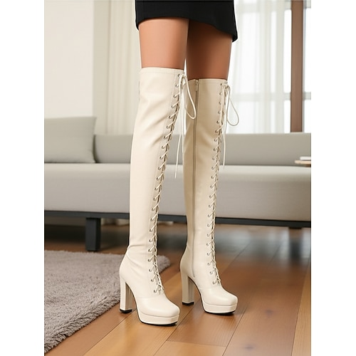 Damen-Overknee-Stiefel mit Plateausohle und Schnürung – Overknee-Stiefel mit hohem Absatz für Pole Dance für das Nachtleben und Partys