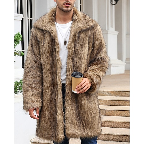 Per uomo Giacca Invernale Cappotto in Pelliccia Sintetica Vacanza Quotidiano Calore Termico Pile Autunno Inverno Semplice Moda Streetwear Bavero Lungo Nero Marrone Giacca