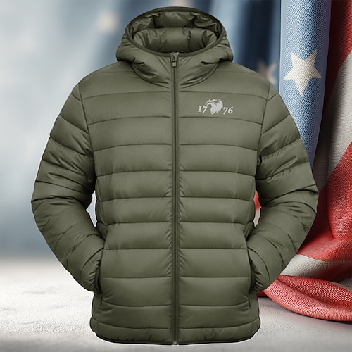 Per uomo Grafico Aquila 1776 Cappotto Invernale Giacca Piumino Giacca imbottita Calore Termico Impermeabile alla pioggia Leggero Casual All'aperto Quotidiano Giacca imbottita trapuntata con cappuccio