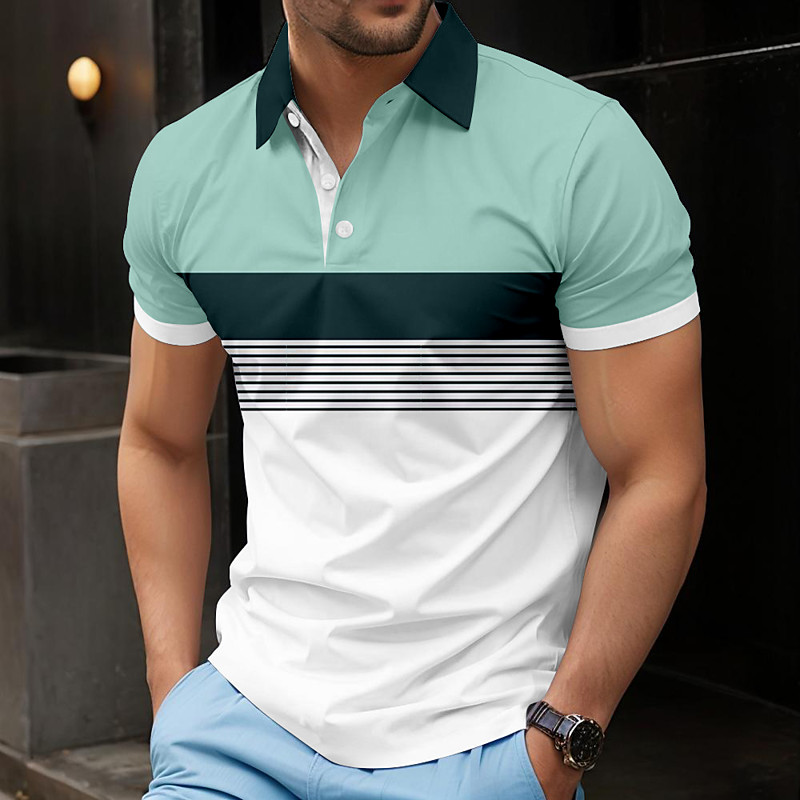 Men's Striped Polo Short Sleeve Polo Shirts Lapel Casual Athleisure Daily Wear 3D Print Buttons Summer Blue Pink Green