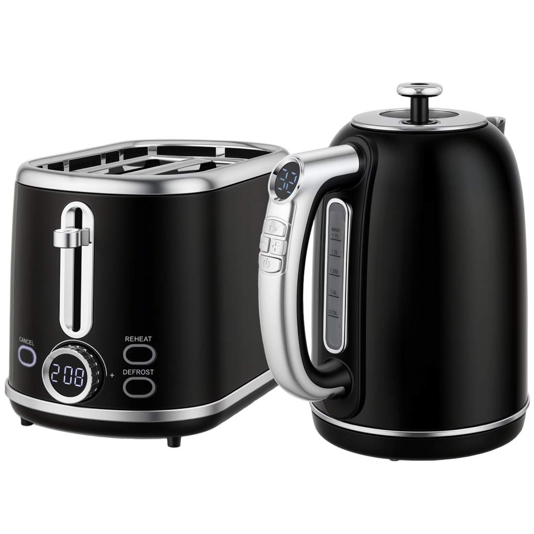 Vannkoker- og brødristersett, LED-display, 1,7 l, 2200 W, retro svart