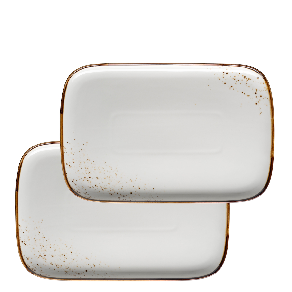 MÄSER Platte 30 x 20 x 2 cm Weiss mit braunem Rand 2er Set, PINTAR Brauner Rand, 594018