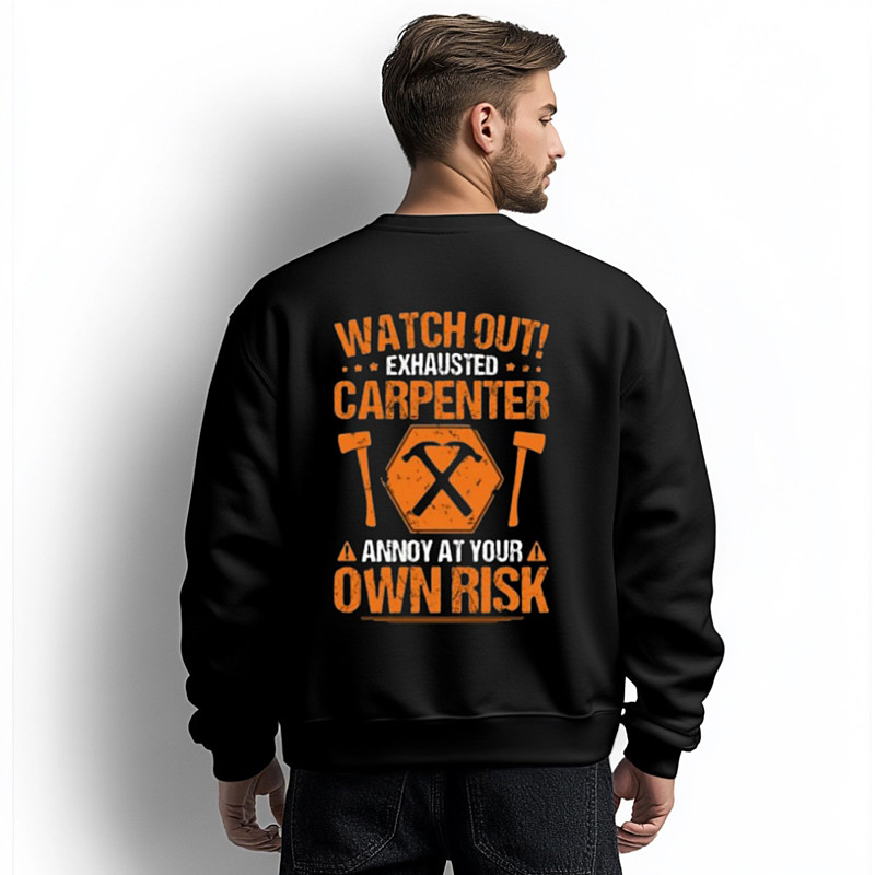Men's Exhausted Carpenter Work Humor Sweatshirt - Annoy At Your Own Risk Graphic Long Sleeve Top