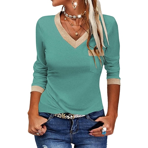 Per donna Maglietta Blocco di colori Casual Manica Lunga Scollo a V Top Regolari Quotidiano Uscire Weekend Patchwork Nero Verde chiaro Verde militare Blu Reale Rosa Primavera Autunno
