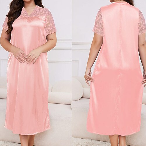 Per donna Abbigliamento da Casa Camicia da Notte Moda Casual Morbido Colore Puro Patchwork Vestiti Casa Vacanza Manica Corta Scollo a V Champagne Rosa Cammello Viola Verde Estate Primavera Autunno