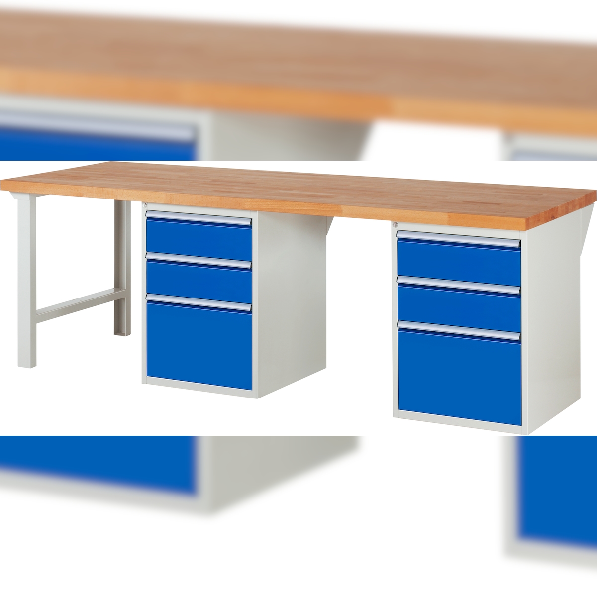 PROREGAL Werkbank Serie 7000 - Modell 7508 | HxBxT 89x300x90cm | 6x Schublade | Schubladenmaße 2x150 + 2x210 + 2x360mm