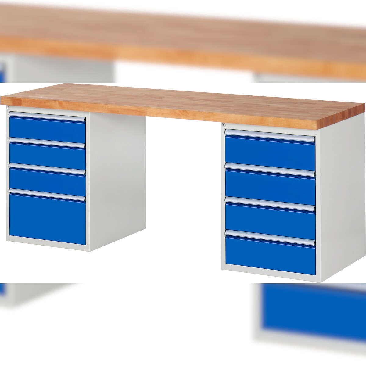 PROREGAL Werkbank Serie 7000 - Modell 7820 | HxBxT 89x250x90cm | 8x Schublade | Schubladenmaße 3x150 + 4x180 + 1x270mm