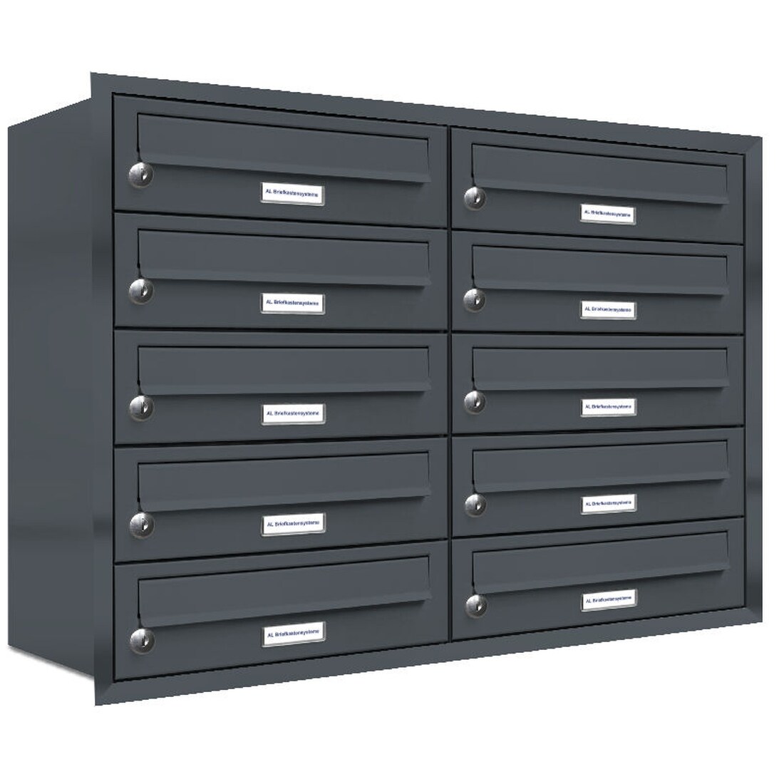 AL Briefkastensysteme 10 Fächer Premium Unterputz Briefkasten Anlage RAL 7016 Anthrazit Grau, Post A4, modern, wetterfest, Artikelnummer 132P10U2P7016