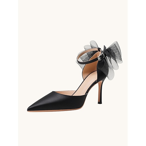 décolleté con tacco alto e fiocco in raso color avorio da donna, eleganti scarpe da sposa a punta per matrimoni in città moderne