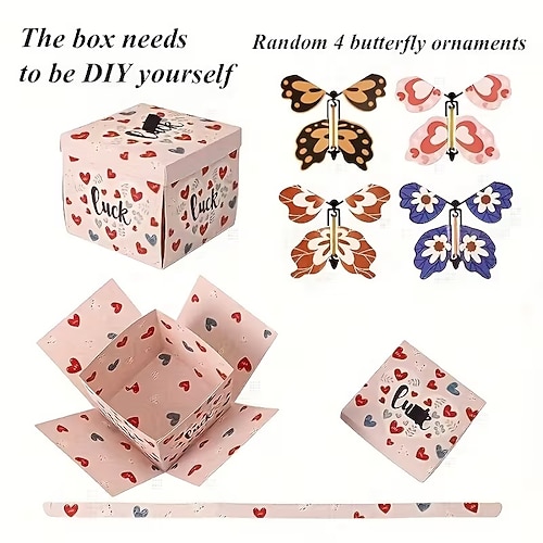 Scatola regalo con esplosione di farfalle a sorpresa da 4 pezzi decorazioni floreali Messaggi di ringraziamento/e vissero felici e contenti - scatola di carta per bomboniere per compleanni,