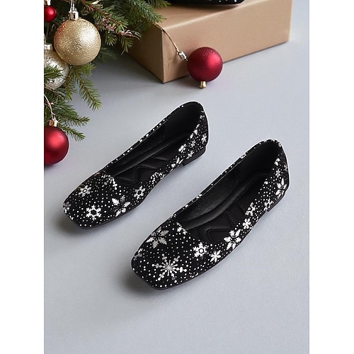 ballerine natalizie rosse da donna con stampa a fiocco di neve – scarpe casual per le feste e per tutti i giorni