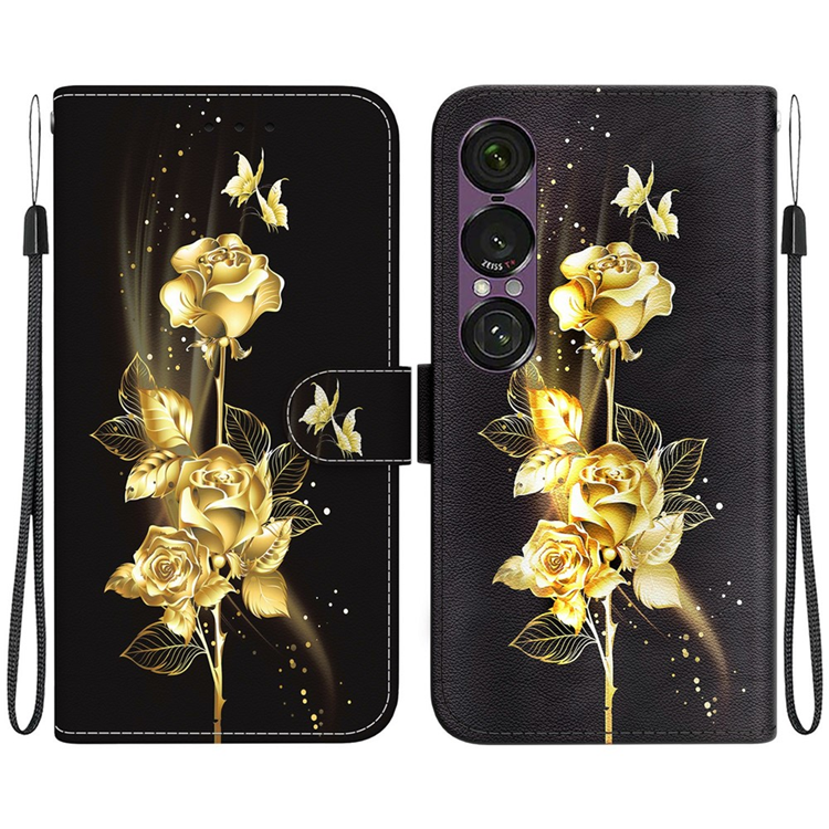 Sony Xperia 1 VII Konstläder Plånboksfodral Pattern Printing - Guld Rosa