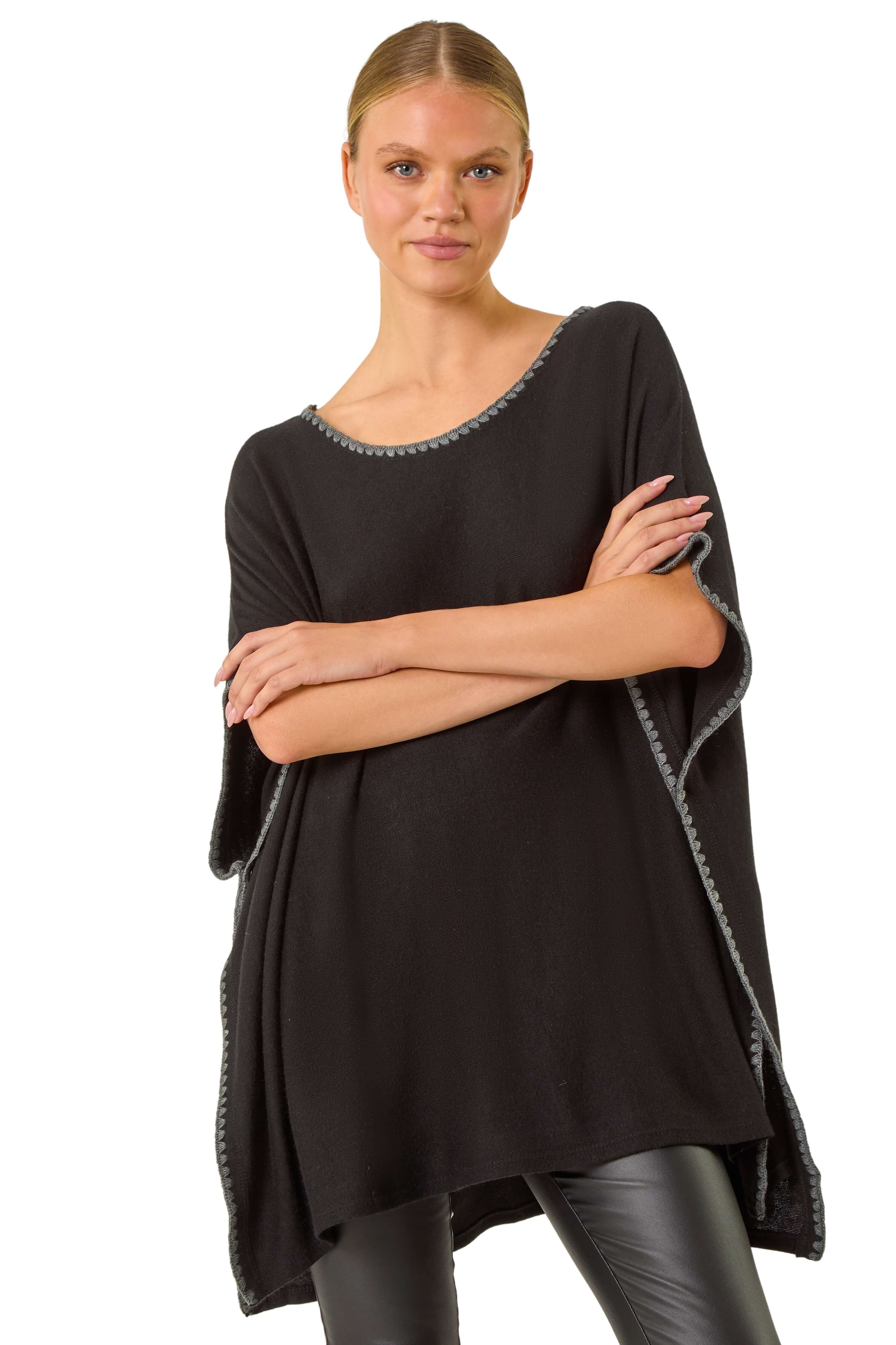 Roman Womens Blanket Stitch Knit Poncho - Black - Size L/XL | Roman Sale | Discount Designer Brands